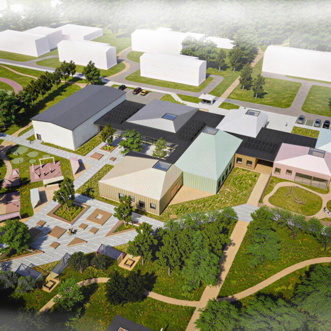 Oisu kogukonna- ja õppehoone ettepanek. Koostööpartner: KURU Arhitektuur.